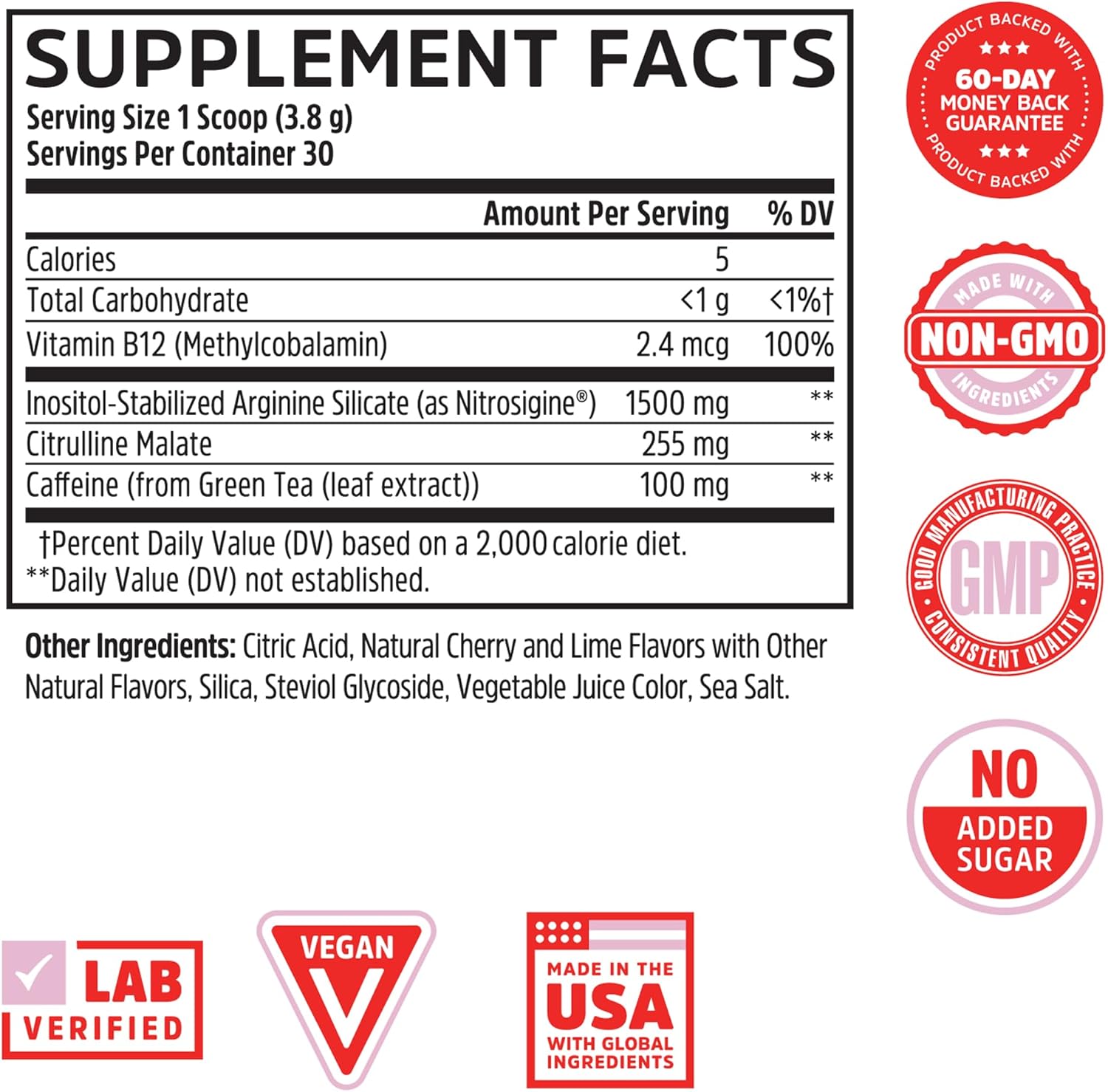 Amp up the voltage for your next workout. Lite Up XTRA is your new favorite hype man, a boosted pre-workout delivering sustained energy and focus. Lite Up XTRA is formulated with clean, naturally-derived ingredients with the purpose of fueling performance, not giving you jitters and itches. Each scoop contains 100 mg of clean caffeine sourced from green tea, enough to give you a boost but not enough to leave you with the jittery feeling from too much caffeine. Our formula also contains Nitrosigine® for a nitric oxide boost and malic acid to support energy and stamina, so your workout doesn’t stand a chance. Plateaus? Never heard of ’em.