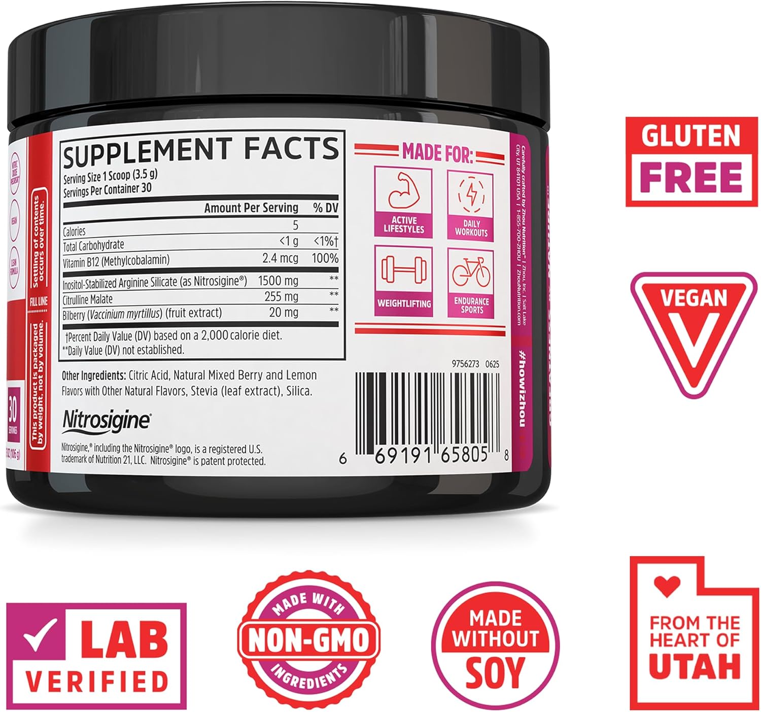 Zhou Nutrition Lite Up - Non-stimulant pre-workout built on Citrulline Malate and Nitrosigine® delivers a nitric oxide boost, while malic acid and tart cherry promote energy, strength and stamina.