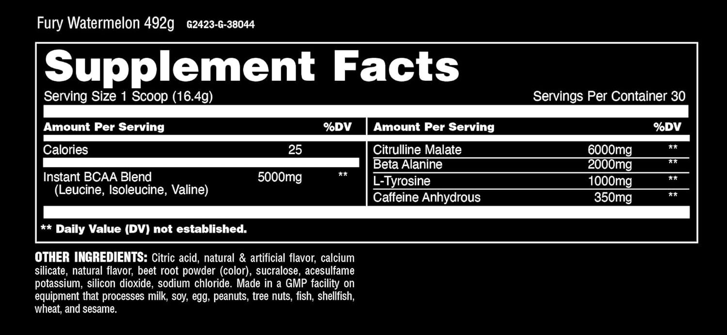 ANIMAL FURY - High Energy Pre Workout Powder for workout energy and focus, a powerful stimulant for bodybuilders!