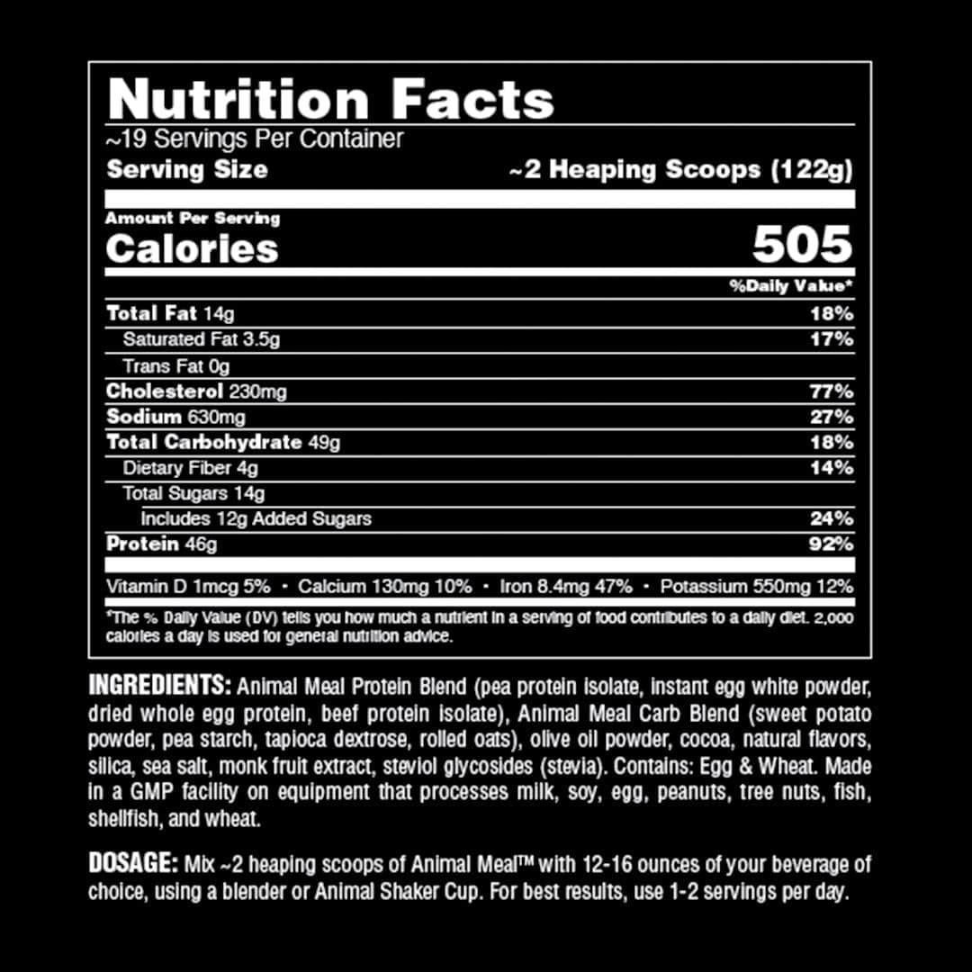 ANIMAL MEAL - All natural high calorie meal replacement protein shake derived from whole foods - egg whites, beef protein, pea protein, sweet potatoes, and rolled oats, flavored with sea salt and other natural flavors to deliver a superior meal in a glass!