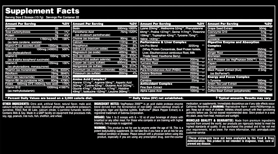 Comments: Animal pak is my most important supplement. It jump starts my whole day and carries me through my training. I feel the difference when I take another brand training pack it just doesn't yield the same results. Animal pak isn't for everyone, but if you are serious about your strength training goals it the only pack you can take to cover all your bases. Its been around since 1983, not to many things period have that kind of longevity. #1