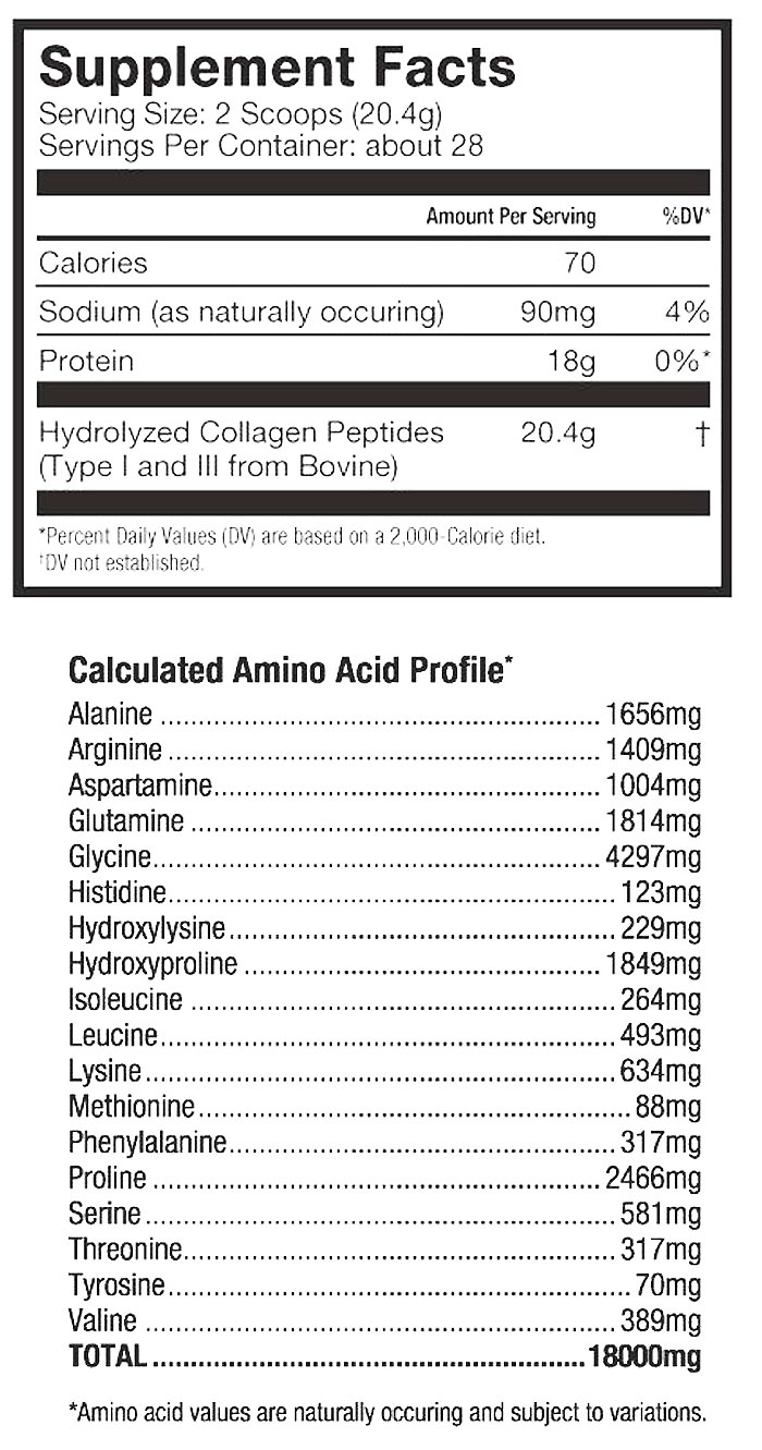 - Beverly’s Unflavored Collagen powder yields 20 grams of Types I and III Collagen peptides per serving from Grass-Fed Bovine sources. Highly absorbable and tasteless.