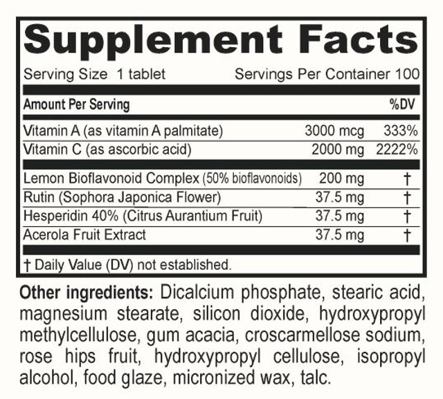 Beverly International has created a unique combination of the three most important nutrients which combat health related problems - Vitamin C, Vitamin A and Vitamin P (bioflavonoids). This is truly the state-of-the-art C formula in that it contains 2,000 mg of Vitamin C, which is so important in many body functions including production of body proteins and proper utilization of iron and folic acid. The bioflavonoids supply Vitamin P, which is essential in maintaining the capillaries. Combined with C and P, we have included a water-dispersible Vitamin A, which is essential in promoting the growth and repair of body tissue.