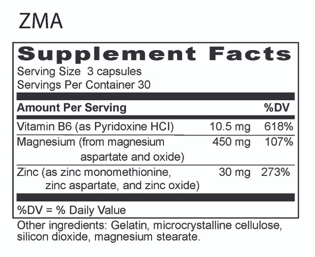 ZMA is the first nighttime anabolic formula developed specifically to enhance recovery by improving sleep efficiency. ZMA 2000 is a very effective sleep aid. We recommend that you take three capsules 30-60 minutes before bedtime. Healing, tissue repair, anabolic hormone production and muscle growth are maximized during sleep, so quality sleep is extremely important to you.