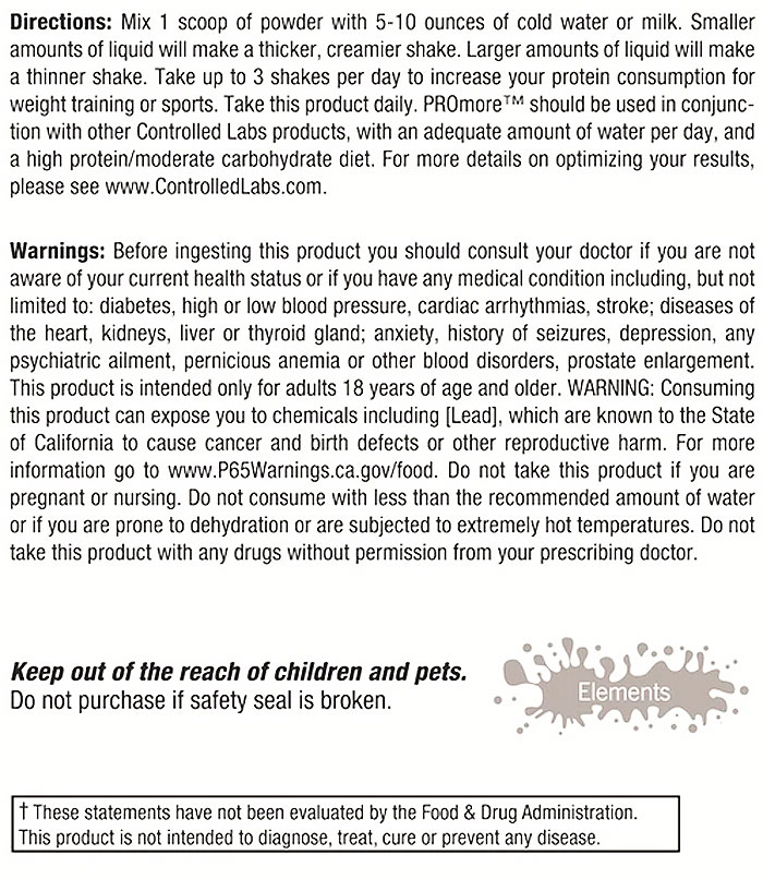 Controlled Labs PROmore - A 100% premium whey protein formula that delivers 24 grams of the best tasting protein on the market to help you recover from the hardest workouts and pack on quality muscle mass!