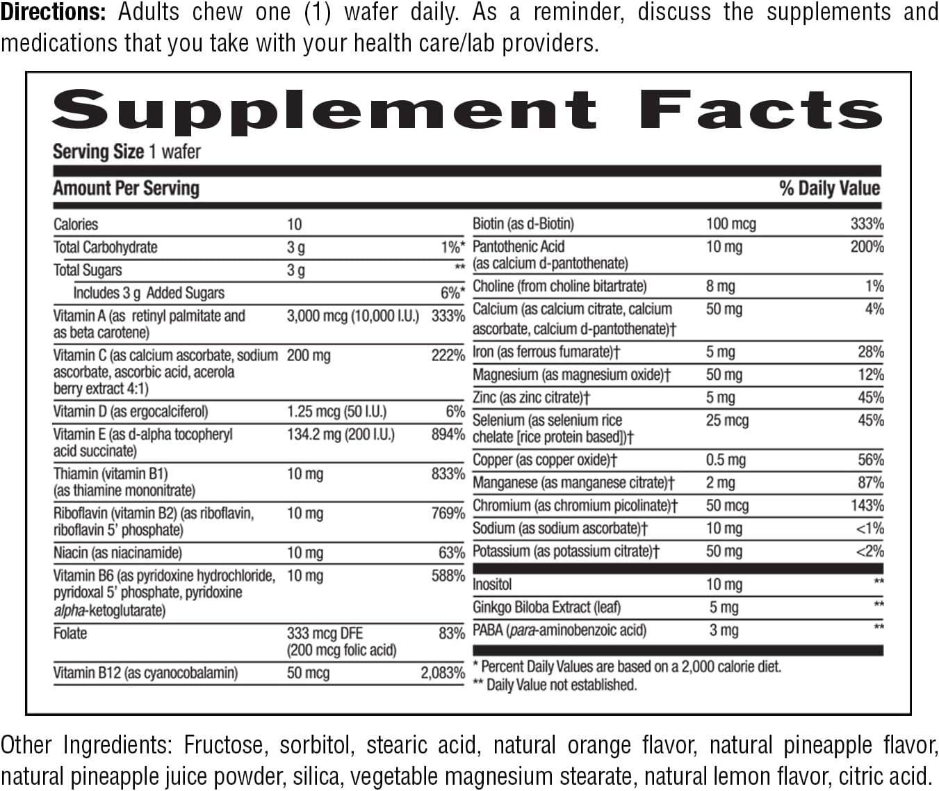 Country Life now offers an adult chewable daily multivitamin and mineral formulation. This delicious wafer is a convenient way to supplement your diet.