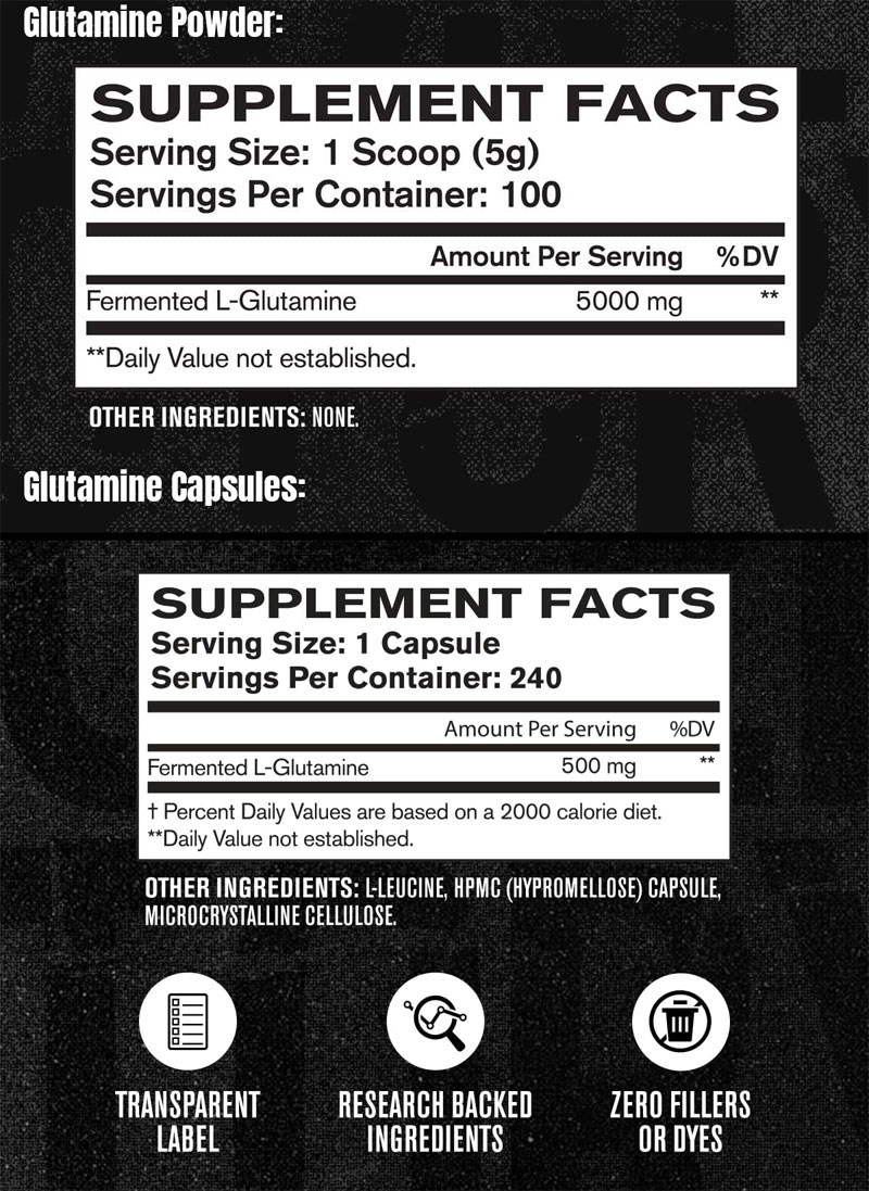 - Intense Results: L-Glutamine supports muscle recovery, increases muscle glycogen synthesis, fortifies immune function, promotes gut function, and enhances performance. Due to the multifunctional and versatile properties of L-Glutamine, it's a staple amino acid supplement for both men and women.