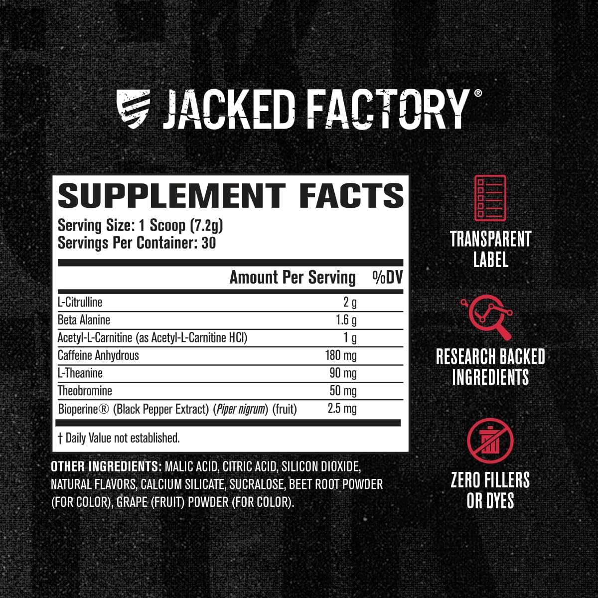 Comments: Jacked Factory is my supplement company. I take 1 scoop 30 minutes before working out and I can feel it flowing through my body. Great energy and focus to push through my hardest worouts. Another JF hit product.