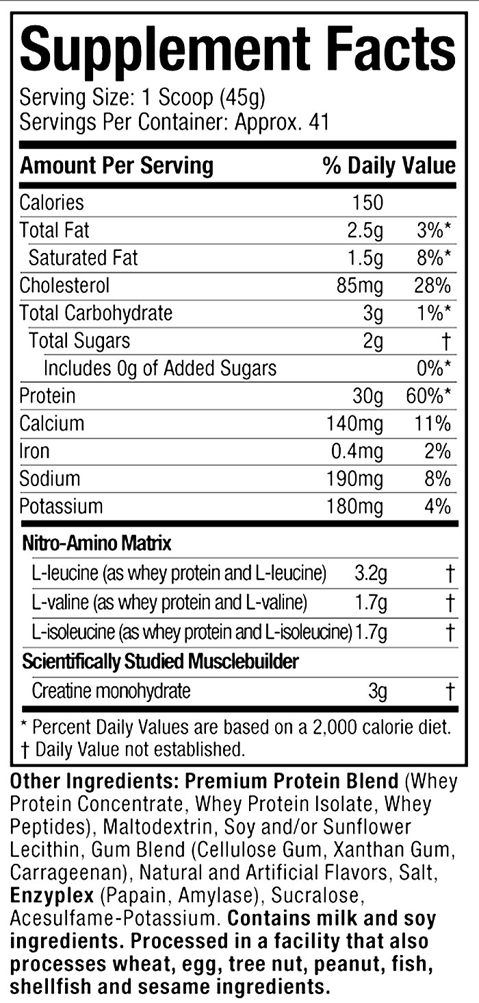 The whey protein in Nitro-Tech® has been filtered using multi-phase filtration technology for less fat, lactose and impurities than cheaper protein sources. Furthermore, Nitro-Tech® is manufactured according to cGMP standards, as is required for all dietary supplements to ensure quality and integrity.
