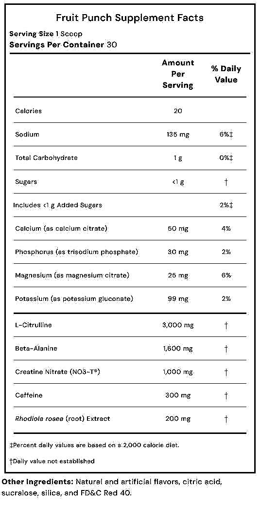 Do not exceed suggested daily serving. Not for use by individuals under the age of 18 years. Do not use if pregnant or nursing. This product contains a potent amount of caffeine (approximately 300 mg per serving). Do not combine with other sources of caffeine or stimulants while consuming this product because stimulants may cause nervousness, irritability, sleeplessness, and occasionally, rapid heartbeat. Beta-Alanine may cause a tingling sensation on the skin that is temporary. This sensation is normal and should lessen or subside. Consult your healthcare provider before use if you are sensitive to stimulants, taking medication, or have a medical condition. Use only as directed. KEEP THIS PRODUCT AND ALL SUPPLEMENTS OUT OF THE REACH OF CHILDREN AND PETS.