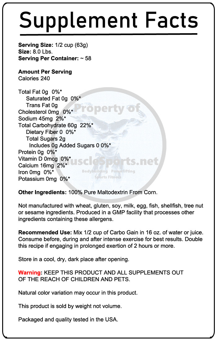 Gaining weight in a safe, healthy manner can be a brutal task. The outdated tactic of simply devouring everything in sight may help you pack on the pounds, but it will also increase your body fat. NOW Carbo Gain is a state of the art 100% carbohydrate formula that uses maltodextrin - an easily digestible from of corn starch that contains glucose polymers. These linked sugar compounds metabolize slowly within the body to ensure sustained energy during exercise and high-endurance training, delivering the maximum nutritional value from every carb you consume.
