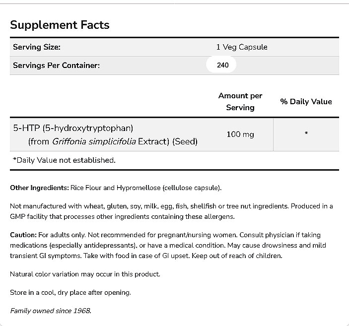 Keep in Bottle. If you are currently taking antidepressant medications please consult a physician prior to use. May cause drowsiness. KEEP THIS PRODUCT AND ALL SUPPLEMENTS OUT OF THE REACH OF CHILDREN AND PETS.
