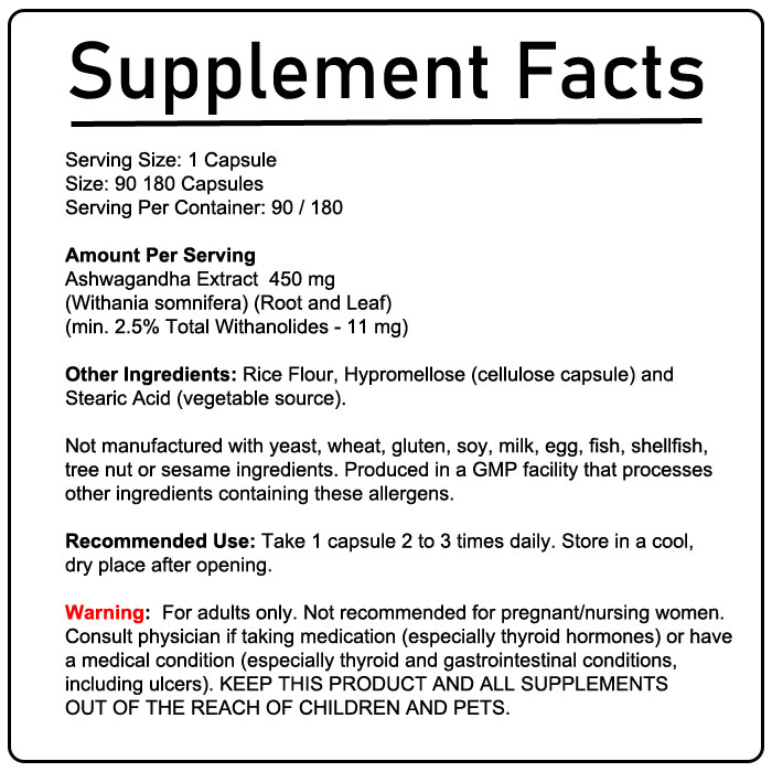 NOW Ashwagandha 450mg - A general tonic & adaptogen, that helps the body adapt to temporary normalize stress and supports your immune system.