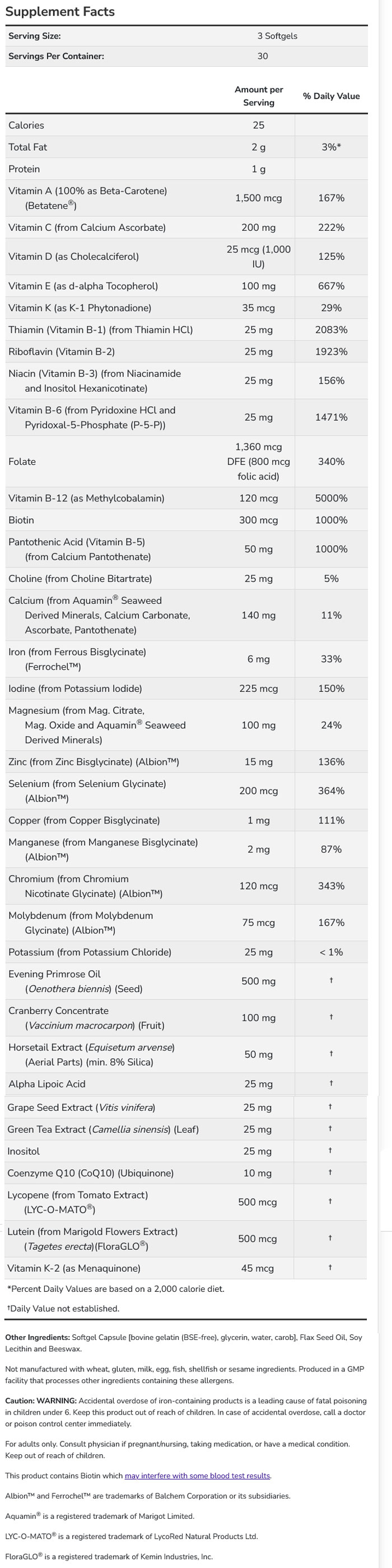 - 25mg of the powerful metabolic antioxidant Alpha Lipoic Acid - rarely found in other multiples