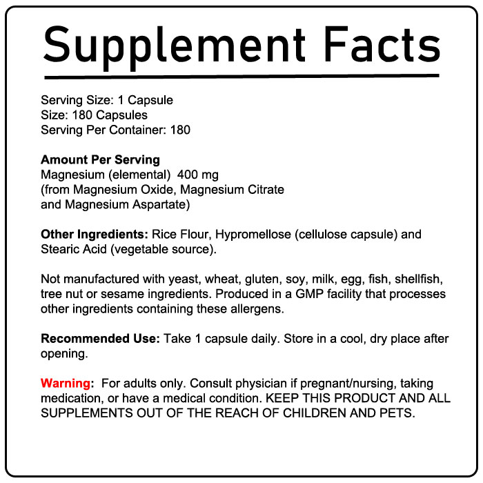 NOW Magnesium Caps 400mg - 100% natural Magnesium: A mineral that is critical for energy production and metabolism, muscle contraction, nerve impulse transmission, and bone mineralization.