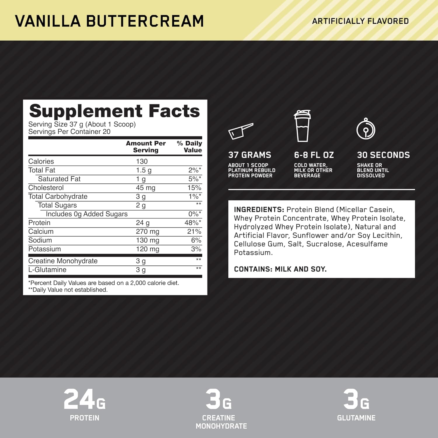 Optimum Nutrition Platinum Rebuild - Blended protein formula with added nutrients like Creatine and Glutamine to help fortify your recovery and growth for continued performance.